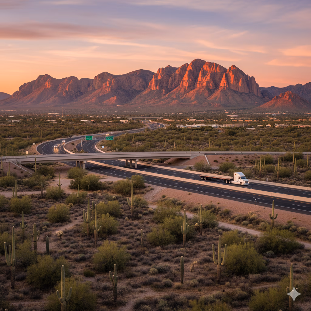 Apache Junction is a gateway city in the East Valley, positioned at the base of the Superstition Mountains along the US-60 corridor. Known for its proximity to scenic desert terrain and mountain recreation, Apache Junction also serves commercial traffic heading east toward Globe and beyond. The US-60 corridor through Apache Junction experiences heavy truck traffic, particularly from mining and construction operations serving eastern Arizona markets.